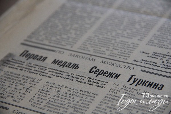 Медалью «За спасение утопающего» от имени Президиума Верховного Совета СССР исполком областного Совета народных депутатов наградил семиклассника Инзенской средней школы № 4 Сергея Туркина.