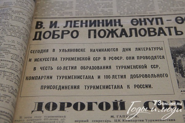 5 октября 1984 года. Сегодня в Ульяновске начинаются дни культуры и искусства Туркменской ССР в РСФСР. Они проводятся в честь 60-летия образования Туркменской ССР, компартии Туркменистана и 100-летия добровольного присоединения Туркменистана к России.