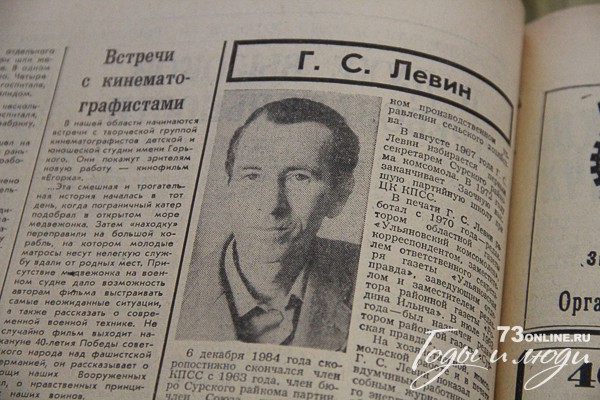 6 декабря 1984 года скоропостижно скончался член КПСС с 1963 года, член бюро Сурского райкома партии, член Союза журналистов СССР, редактор районной газеты «Сурская правда» Геннадий Семенович Левин.