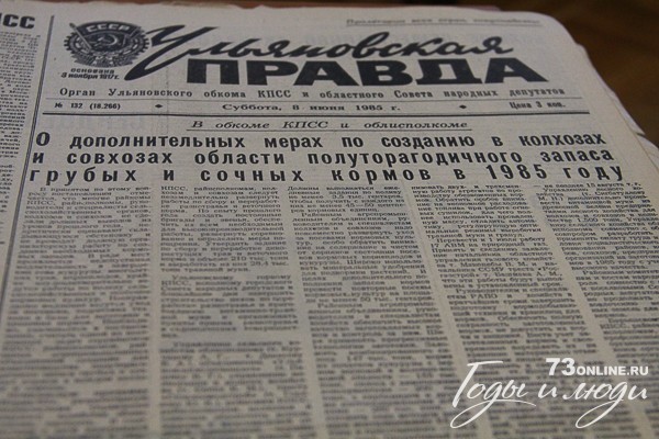 Опубликовано постановление бюро обкома КПСС и облисполкома «О дополнительных мерах по созданию в колхозах и совхозах области полуторагодичного запаса грубых и сочных кормов в 1985 году».