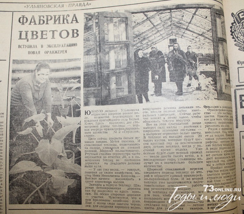 Южную окраину Ульяновска обрамляет широкое ровное поле, незаметно переходящее во владение села Белый Ключ. Здесь поднялись две стометровой длины теплицы - первая очередь оранжерейно-парникового хозяйства № 2 "Горзеленстроя" (...)