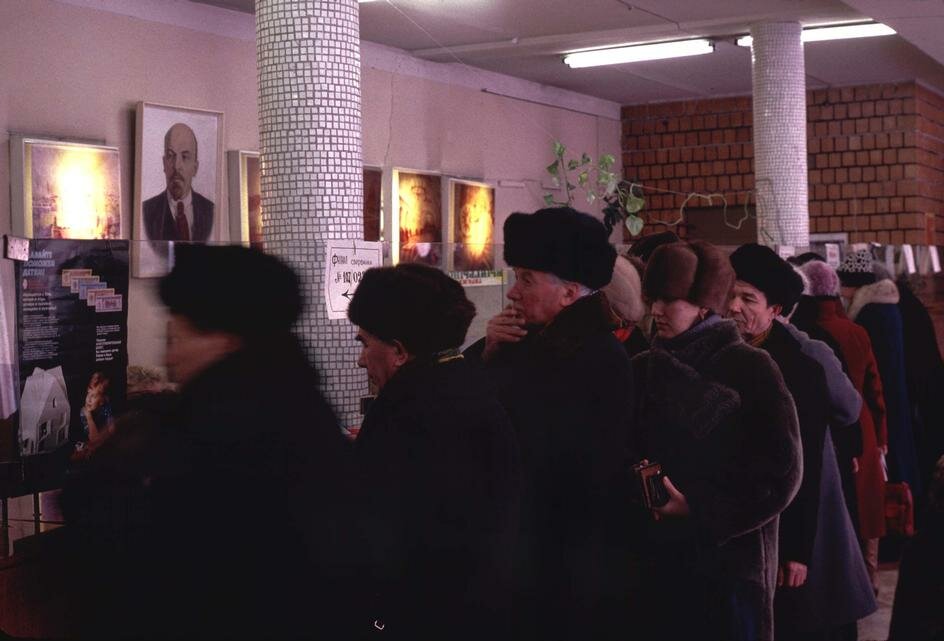 В отделе галантереи торгуют резинкой, рядом - костюмной тканью за 44 «рэ». Очереди, естественно, присутствуют там и там, но с разной степенью надежды. Явно скучают продавцы в «мыльном» – интерес к их продукции, подорожавшей вдвое, временно упал. Да и отоваренные талоны, видимо, сыграли не последнюю роль.