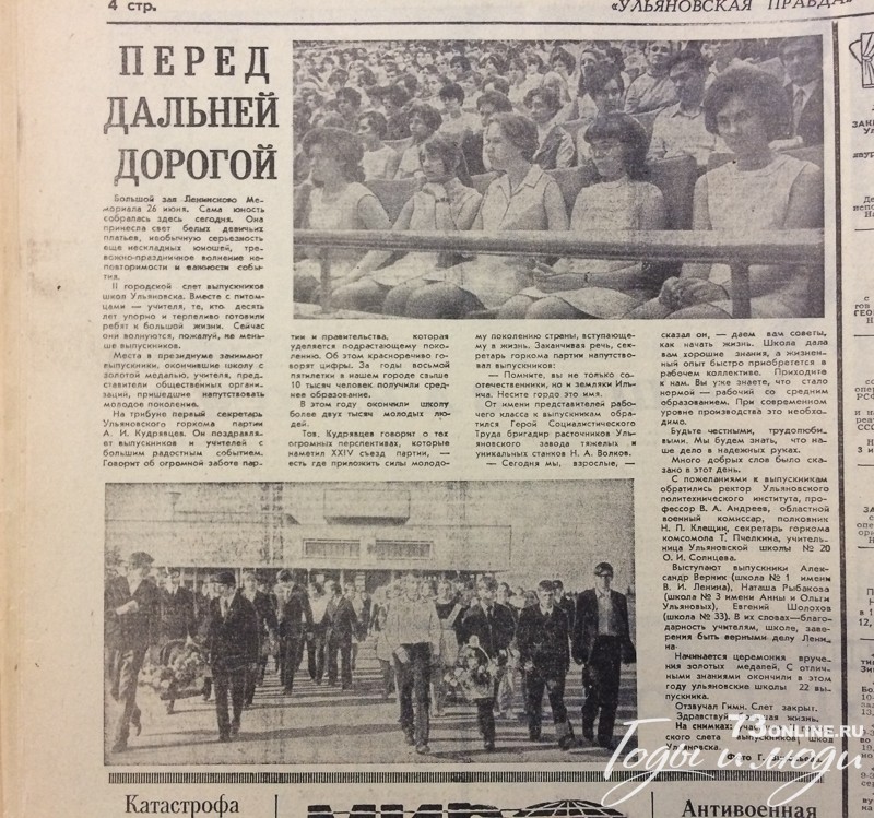 (...) Заканчивая речь, секретарь горкома партии А.И. Кудрявцев напутствовал выпускников: