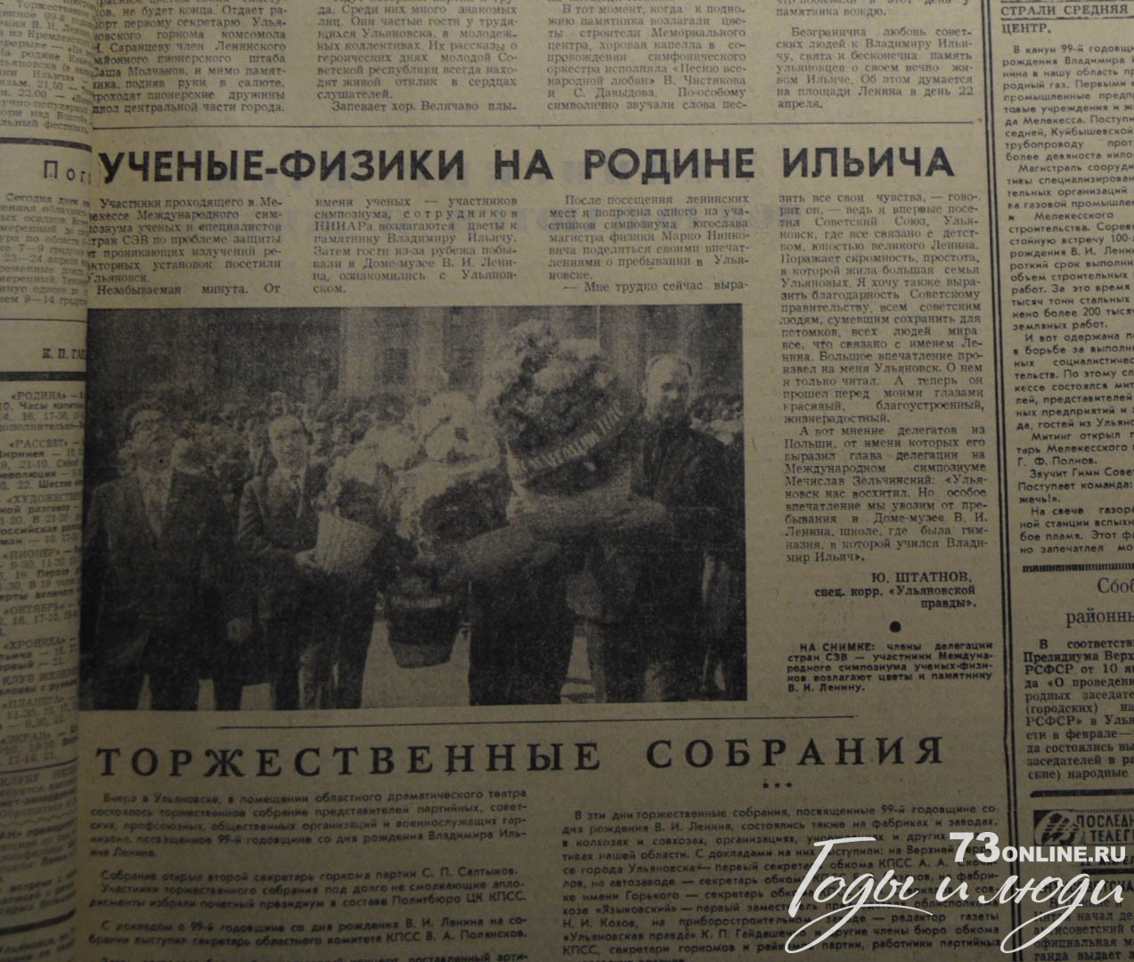 Ю. Штатнов, спец. корр. «Ульяновской правды».