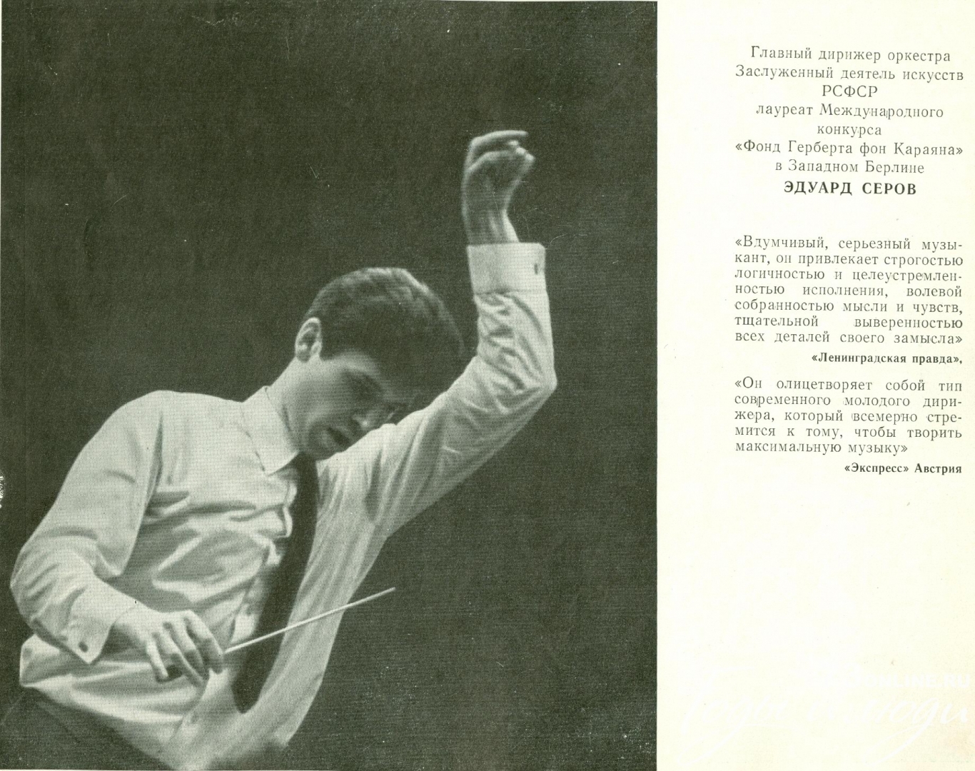 В Москве вот уже несколько дней назад появились афиши, извещающие о выступлении Ульяновского Государственного симфонического оркестра под управлением главного дирижера лауреата Международного конкурса имени Караяна Эдуарда Серова. Эти афиши можно встретить и на Ленинском проспекте, и на улице Горького, и на Таганке, и, конечно, у здания Московской Государственной консерватории, где состоялось выступление наших музыкантов.