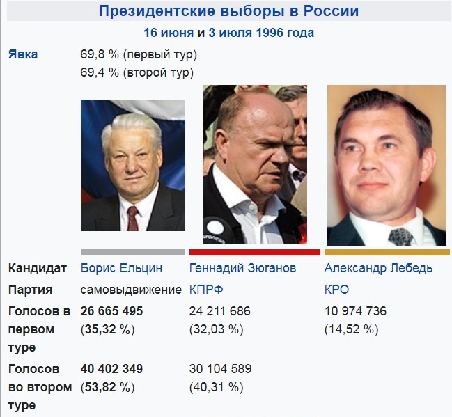 По данным Центризбиркома, на 18 часов вечера 17 июня подведены следующие итоги голосования по России (подсчитано 98 процентов бюллетеней):