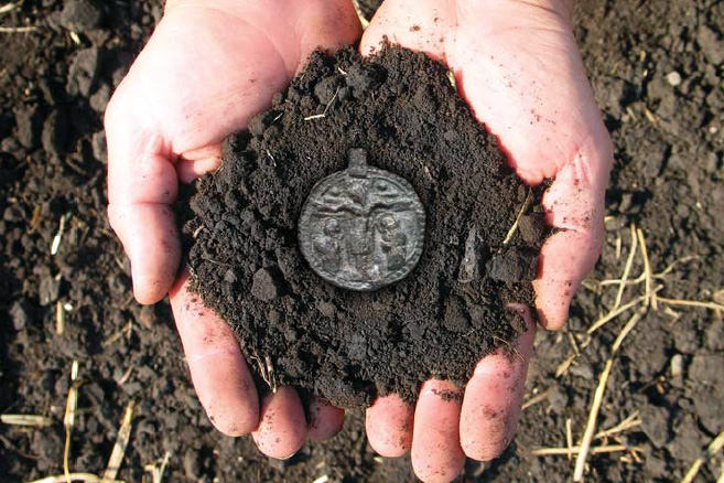 Самая уникальная находка для наших мест – змеевик с изображением Распятия с предстоящими была сделана также недалеко от Старой Майны. На территории бывшего СССР было известно только две полностью идентичных находки, по-видиму, в древности отлитых одним мастером.