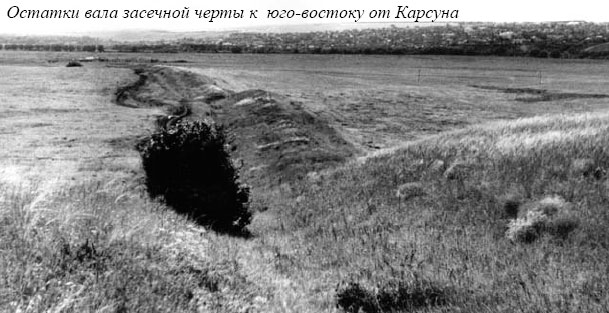На окраине леса северо-восточнее Карсуна имеется еще значительный земляной вал, который тянется на юго-запад до самого леса за р. Карсункой. Это остатки защитных укреплений границ Российского государства, построенных в 1647-1654 годах.