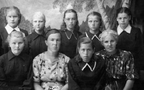 Много работали в полях, на огородах. Подъем в пять часов. Шли на колхозное поле. Пололи пшеницу, рожь, просо. И два раза в день ходили на свой участок. На участке сажали огурцы, капусту, помидоры, картофель. Пропалывали, рыхлили, поливали, окучивали. Все делали, чтобы вырастить урожай. Жали серпами, вязали в снопы, молотили цепами.
