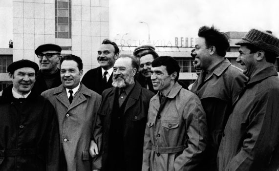 На фото - А. Жуков и Н. Благов (крайние справа) среди ульяновских писателей
