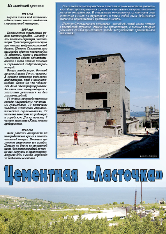 Сенгилеевское месторождение известняка можно назвать уникальным. Оно характеризуется огромным скоплением микроорганизмов в меловых отложениях. В результате тектонических процессов эти скопления вышли на поверхность и явили собой легко добываемое сырье для строительной промышленности. Поселок Сенгилеевского цемзавода – самый обычный, каких немало в российской глубинке. Однако его архитектура, а также история развития самого цементного завода заслуживают пристального внимания.