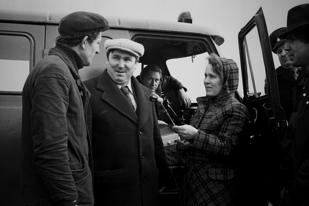 «Радиожурналист Нина Баболина и секретарь парткома колхоза в Майнском районе Ульяновской области. Рядом – механизатор. Разговор идет о досрочном окончании сева», - вспоминает кинооператор, фотограф Борис Тельнов.