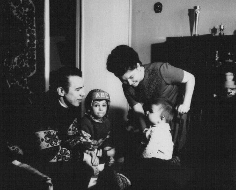 «Хоккеист Владимир Монахов приехал с Чемпионата мира и привез сувениры. Это его жена и сыновья у них дома», - вспоминает кинооператор, фотограф Борис Тельнов.