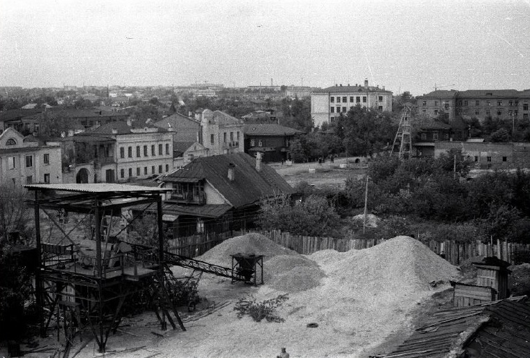 Подготовка стройплощадки под Мемцентр. Митинг по поводу закладки капсулы с письмом к потомкам. Ульяновские репортеры на митинге. Капсула времени с письмом опущена в основание Мемцентра. Ульяновск, 22 апреля 1967 года.