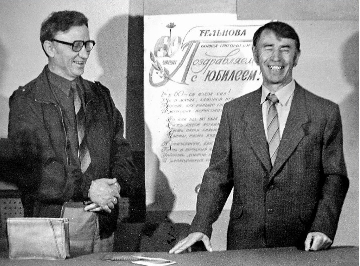 Юрий Гражданцев поздравляет Бориса Тельнова с 60-летием. На склоне Волги.