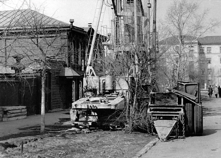 Первая сваенабивная машина «Бенота» на строительной площадке Мемориала на ул. Ульянова. Ульяновск. 1967 г.