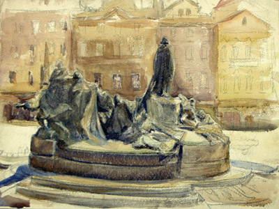 Ходил еще по городу. Серо, мрачно. Архитектура – сплошные коробки. Публика одевается чисто, изящно. В домах – полный комфорт. В городе много разрушений. Сегодня открылись некоторые магазины, пошел трамвай. Писать и рисовать совсем не располагает. Скорее бы на фронт. Сегодня чешские газеты публикуют о капитуляции Германии, но у нас по радио не слышно. Ночью слышим шум: крики «ура». Бегают, пляшут, одним словом, – садом. Подняли стрельбу из всякого вида оружия. Бьют в жестянки, в колокола. Бешеное торжество.