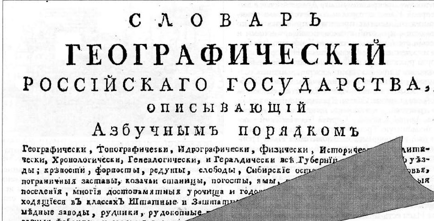 Географический словарь Российского государства, Москва, 1807 год (Орфография и пунктуация подлинника)
