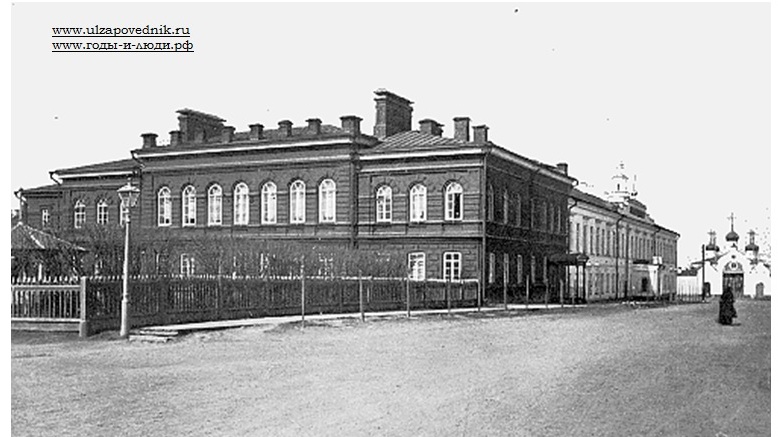 Симбирск, Дворянский переулок, Симбирская классическая гимназия, вторая половина 19 века. На заднем плане - Симбирский Спасский женский монастырь (разрушен, сейчас на его месте ДК "Губернаторский")