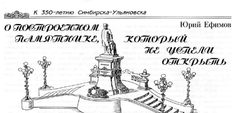 Существует немало интересных легенд о нашем городе, в том числе - истории о многочисленных памятниках, воздвигнутых, якобы, до 1917 года. Приходится слышать и о памятнике Богдану Хитрово, основателю Симбирска, и о памятнике Екатерине II, и о двух памятниках Николаю II и пр. В действительности же в дореволюционном Симбирске памятников было три: историографу и писателю Н.М. Карамзину (открыт в 1845 году), государственному деятелю П.А. Столыпину (открыт в 1913 году) у здания Дворянского собрания - ныне Дворец книги, а третьим можно считать памятник Александру II, который был построен, но не был открыт. Об этом памятнике и пойдет речь.