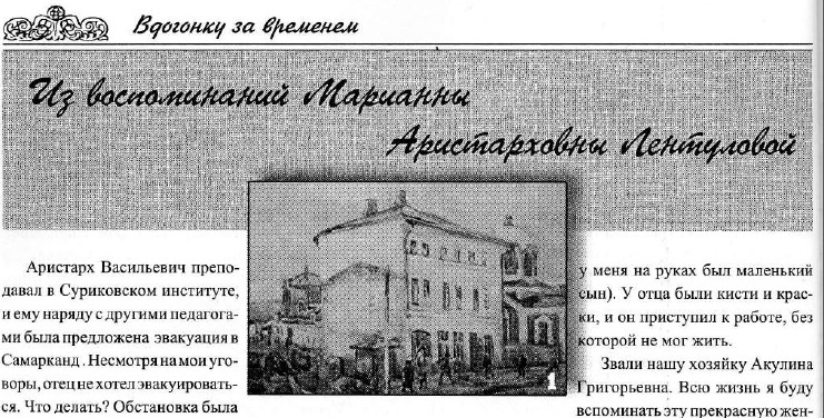 Из воспоминаний Марии Аристарховны Лентуловой