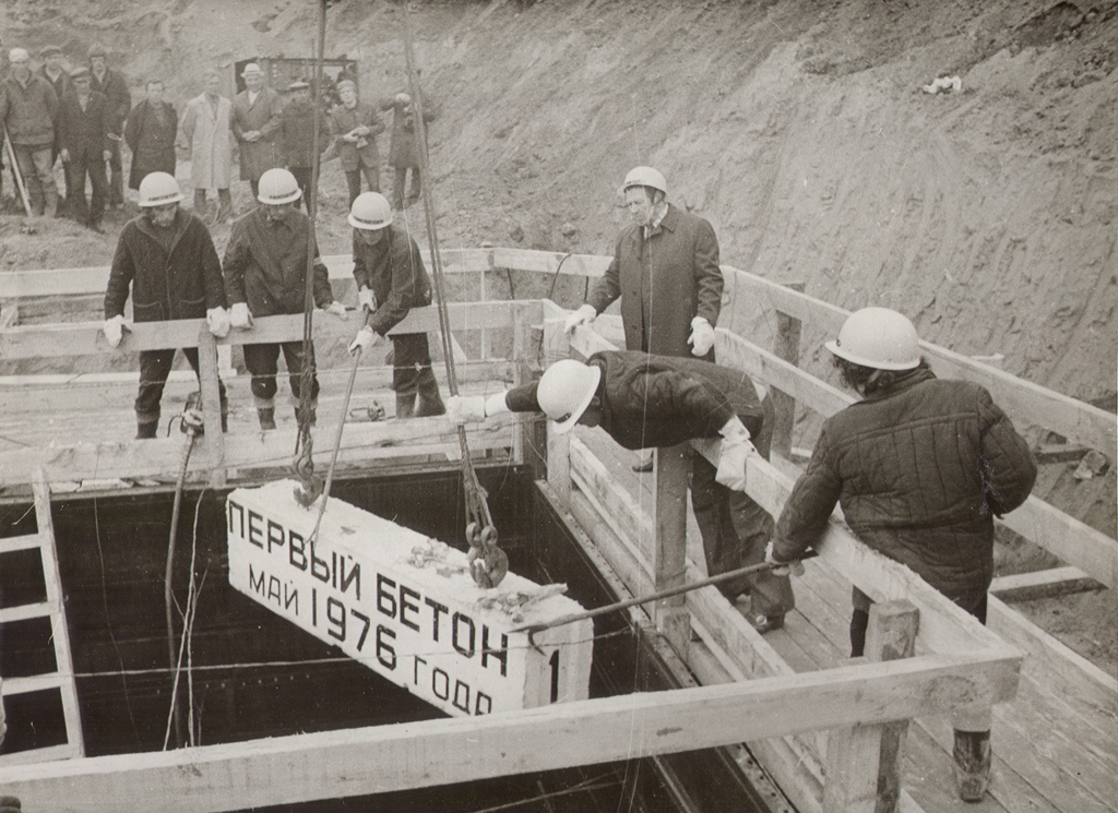 Участники закладки первого бетона авиационно-промышленного комплекса. 1976 г.