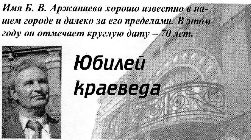 Каждый приход Бориса Васильевича Аржанцева в редакцию сопровождается увлекательными рассказами о потомках известных симбирян, лекциями по античному искусству и архитектуре, литературе, живописи. Кажется, нет такой области знаний, которой не интересуется этот любознательный и эрудированный человек.