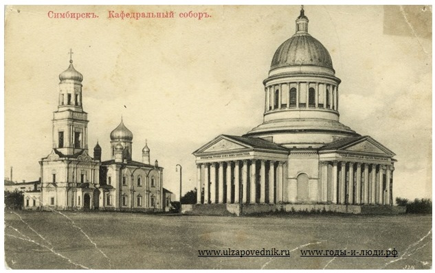 Карточка почтовая. Кафедральные соборы (летний Свято-Троицкий и зимний Никольский), Соборная площадь.