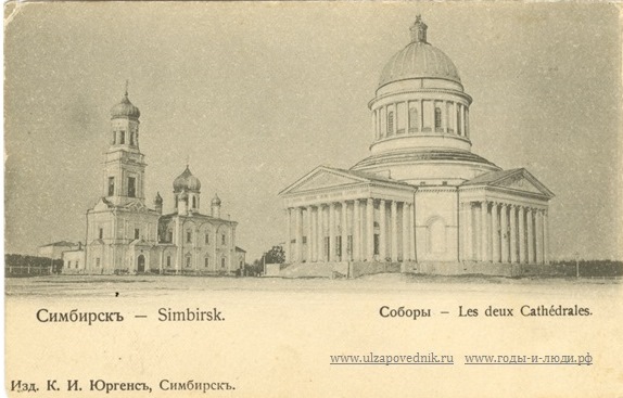 Карточка почтовая. Кафедральные соборы (летний Свято-Троицкий и зимний Никольский), Соборная площадь.