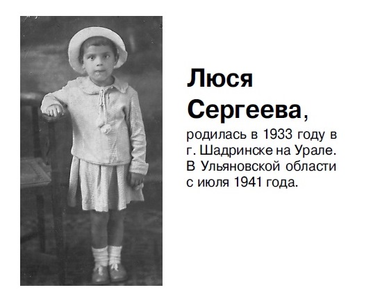 В Ульяновск мы ехали через Москву. У мамы были какие-то деньги (или документы? Кажется, они назывались литер), по которым она купила мне пальто с воротничком, платье для школы, оно мне было велико – трикотажное, красное с синими крапинками. (Всё помню). И купила нам с сестрой по шапке. С этим мы едем дальше.
