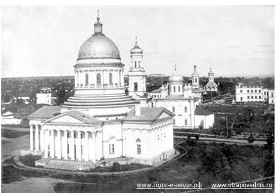 Соборная площадь, Свято-Троицкий кафедральный собор, Симбирск. Архитектор — Михаил Петрович Коринфский. Разрушен в 1936 г.