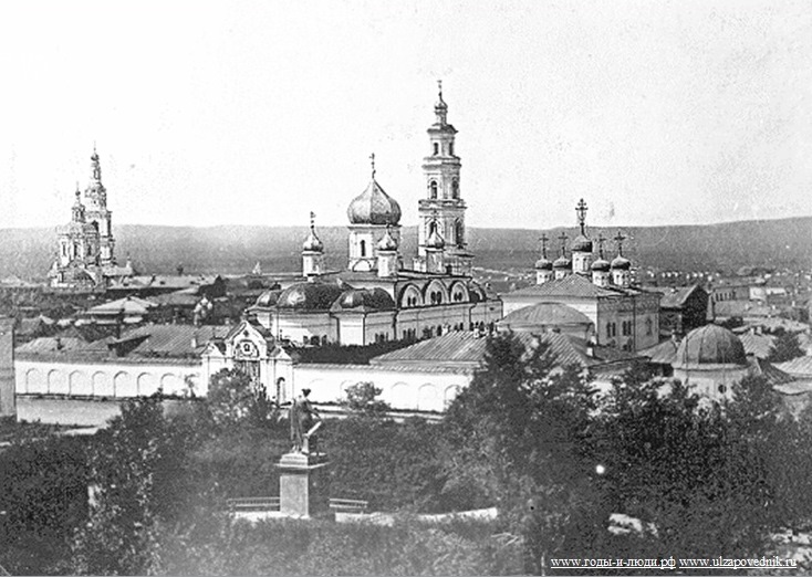 Симбирск, Спасский женский монастырь. Разрушен (сейчас на этом месте находится ДК "Губернаторский"). На переднем плане - памятник Н. Карамзину