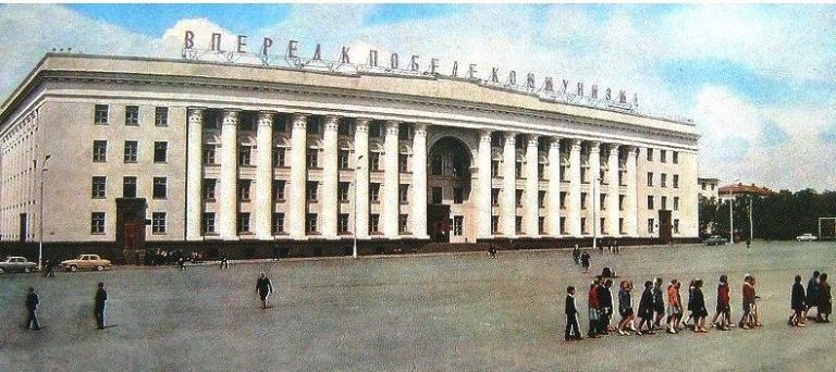 Административное здание обкома КПСС построено и сдано в эксплуатацию в 1958 году. Конференц-зал на 500 мест оформлен в сложном архитектурном исполнении. Несущие колонны балконов облицованы искусственным мрамором, балконы, потолочные перекрытия и сценическая часть здания - фигурной лепкой.