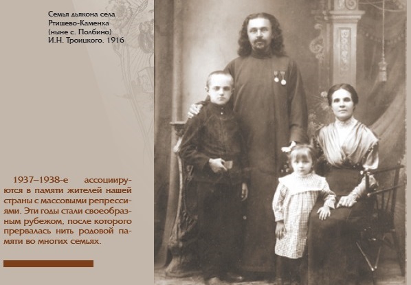 1937–1938-е ассоциируются в памяти жителей нашей страны с массовыми репрессиями. Эти годы стали своеобразным рубежом, после которого прервалась нить родовой памяти во многих семьях.