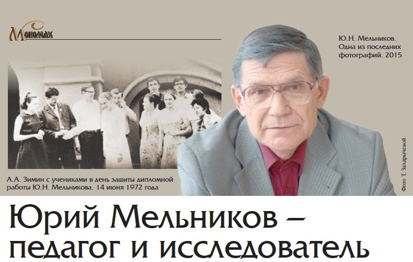 30 октября 2016 года ушёл из жизни учёный-историк, педагог, лауреат премии журнала «Мономах» Юрий Николаевич Мельников. Этот материал – первая попытка осмысления жизненного пути и граней таланта видного специалиста по отечественной истории XVI–XVII веков, сумевшего, к тому же, разработать и обосновать собственную теорию всемирно-исторического процесса.