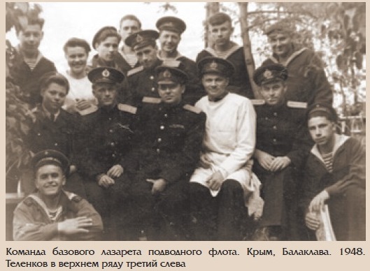 В июле 1947 года меня направили на военно-морскую базу подводного флота в Крыму в базовый лазарет санинструктором. Здесь я служил до самой демобилизации в октябре 1951 года. Как и всем рядовым 1927 года рождения, призванным в 1944 году, мне пришлось отслужить «срочную» – семь лет и пять месяцев. Очевидно, что наш год задержали на службе не случайно. Началась «холодная война» против Советского Союза.