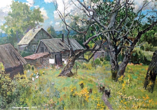 В картине «Ели» (2016) основа, не тронутая краской, легко вплетается в живописный строй пейзажа, привнося особую свежесть и свет в деревенский дворик, граничащий с лесом и заповедными елями. Цветовой диапазон, используемый художником, огромен. В работе «Зелёный двор» (2012), тёмные деревья на фоне неба и разнотравья читаются графически чётко, но впечатляет богатство оттенков в изображении стволов и ветвей: от ярких всплесков синего до угольно-чёрного. Зоркость видения цвета, формы достигает невероятной раскрепощённости. Достаточно точно взятого длинного мазка, чтобы передать форму, фактуру и цвет потемневших брёвен старой постройки («Неясный день», 2016). Широкие и свободно проложенные пятна розоватого замеса создают впечатление лёгкой сквозной листвы берёз, погрузивших кроны в беспокойное пространство изменчивых летящих облаков.