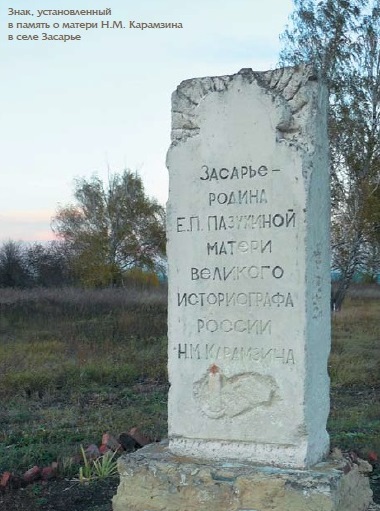 Судьба не пощадила семейного некрополя Пазухиных в Засарье. Уничтожена была и помещичья усадьба в этом селе. Тем не менее уже на закате советской эпохи в селе был установлен памятный знак, напоминающий о том, что в этом населённом пункте родилась мать Николая Михайловича Карамзина. Появление мемориального знака делает честь жителям Сурского района, сохраняющим память о женщине, подарившей жизнь нашему замечательному соотечественнику.