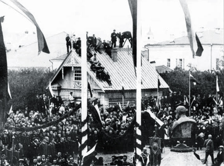 Павильон, выстроенный в начале ХХ века при катке на территории Николаевского сада (на фото - открытие памятника П. Столыпину 1(14) сентября 1913 г.)