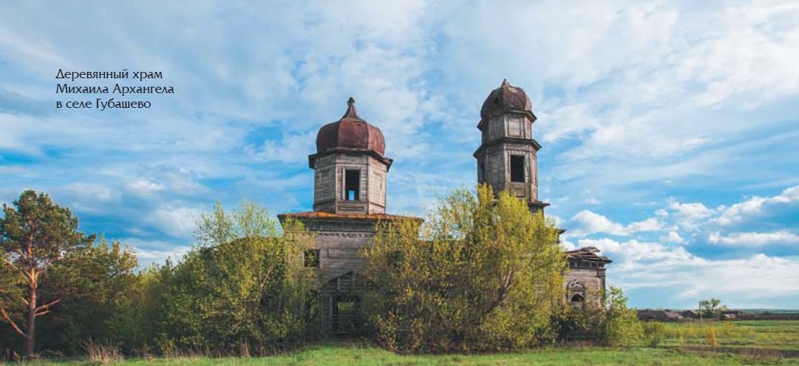 Церковь Михаила Архангела в селе Губашево стоит на небольшом возвышении чуть поодаль от редко разбросанных ветхих домов. Природа неминуемо одерживает верх над творением человека – деревянная церковь кругом поросла деревьями и кустарником. Эта деревянная церковь стоит здесь не менее ста лет – она построена прихожанами в 1910–1912 гг. В советское время использовалась Губашевским сельсоветом как склад для зерна. Внутри путник, безусловно, не останется равнодушным к сохранившимся росписям – пространство под куполом подсвечивается не только сквозь оконные рамы, свет будто льётся сверху, с самой фрески.