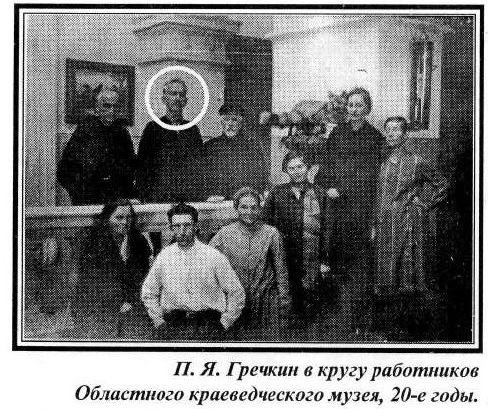 Первый директор Ульяновского краеведческого музея П.Я. Гречкин с сотрудниками, 1920-е гг.