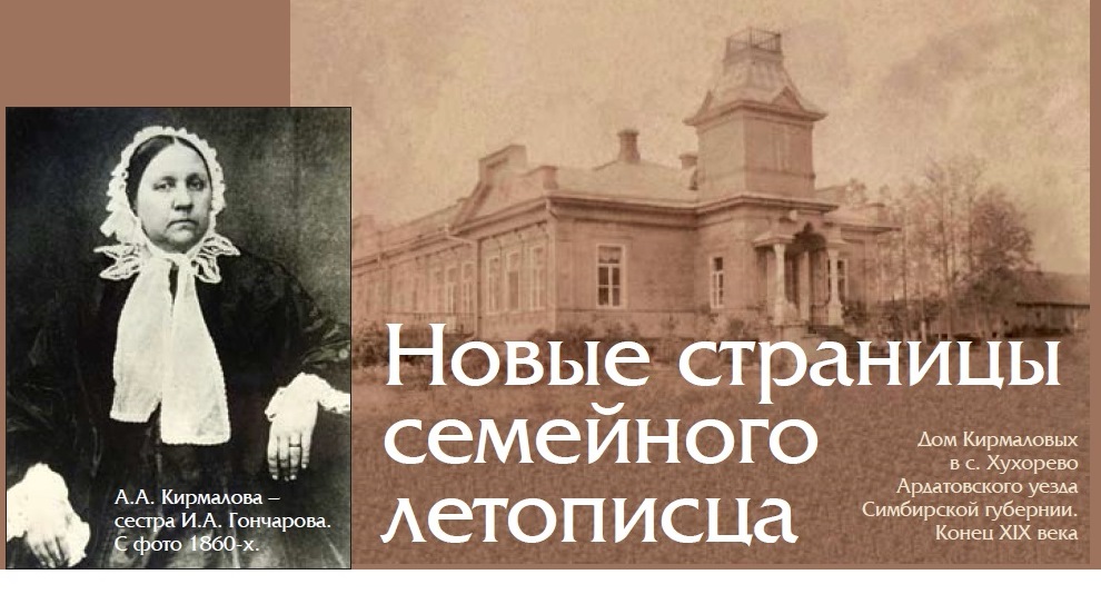 В преддверии 205-летия со дня рождения И.А. Гончарова хотелось бы вспомнить об одном не менее значимом для почитателей творчества прославленного романиста и профессиональных гончарововедов юбилее. В честь 200-летия сестры писателя А.А. Кирмаловой в рамках Года литературы в Российской Федерации и Года национальной памяти и славы в Ульяновской области в музее И.А. Гончарова была создана выставка «Новые страницы семейного летописца».