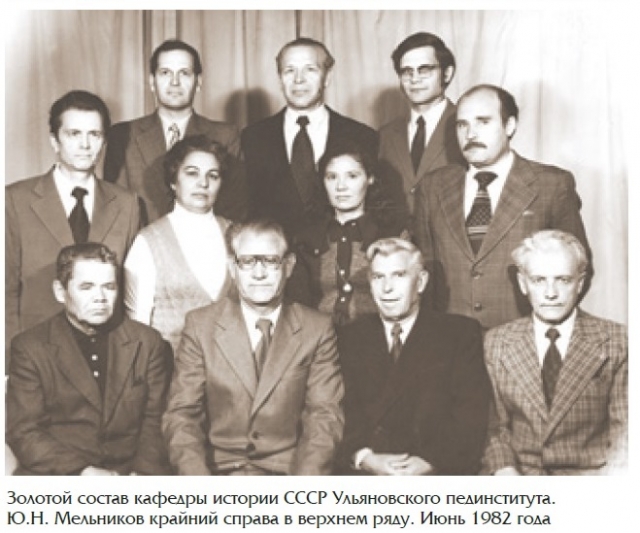 Окончив аспирантуру в 1976 году, Мельников отправился в Ульяновск. Стал лаборантом, а потом – старшим лаборантом на кафедре истории СССР в пединституте. Подробнее читайте в материале Юрий Мельников – педагог и исследователь