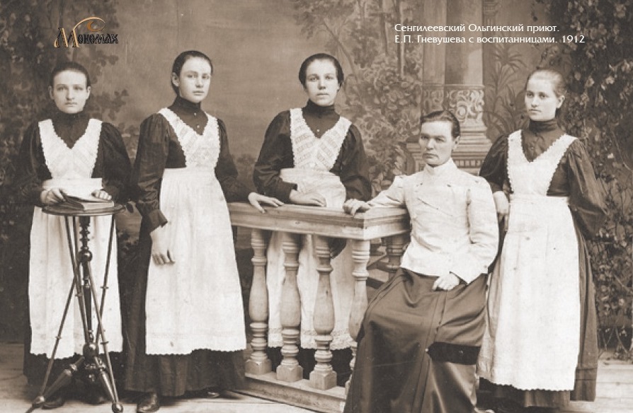 Сенгилеевский Ольгинский приют. Е.П. Гневушева с воспитанницами
