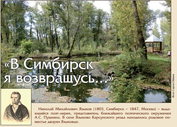 Николай Михайлович Языков (1803, Симбирск – 1847, Москва) – выдающийся поэт-лирик, представитель ближайшего поэтического окружения А.С. Пушкина. В селе Языково Карсунского уезда находилось родовое поместье дворян Языковых.