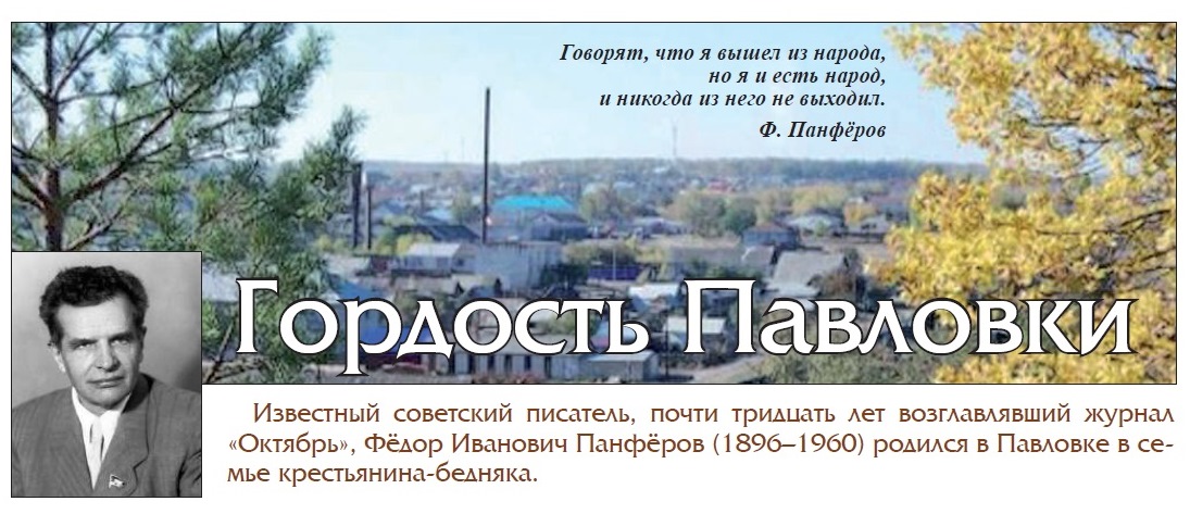 Известный советский писатель, почти тридцать лет возглавлявший журнал «Октябрь», Фёдор Иванович Панфёров (1896–1960) родился в Павловке в семье крестьянина-бедняка.