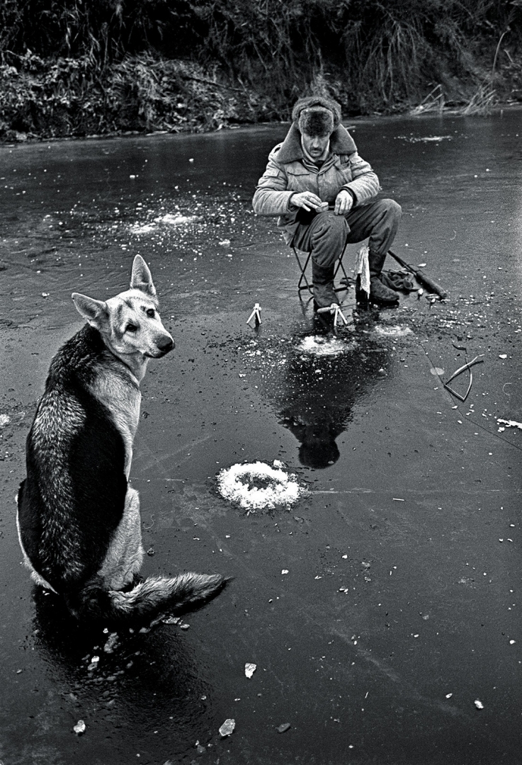 Второе фото - добыча мотыля на тонком льду (червевидные красные личинки комаров семейства Chironomidae, достигающие длины в несколько сантиметров, хорошая наживка для ловли рыбы).