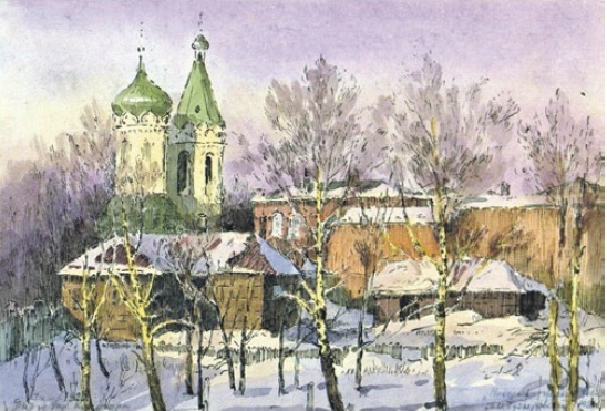 Художник - Павел Ильич Пузыревский. Никольская церковь, Симбирск. 1920 г.