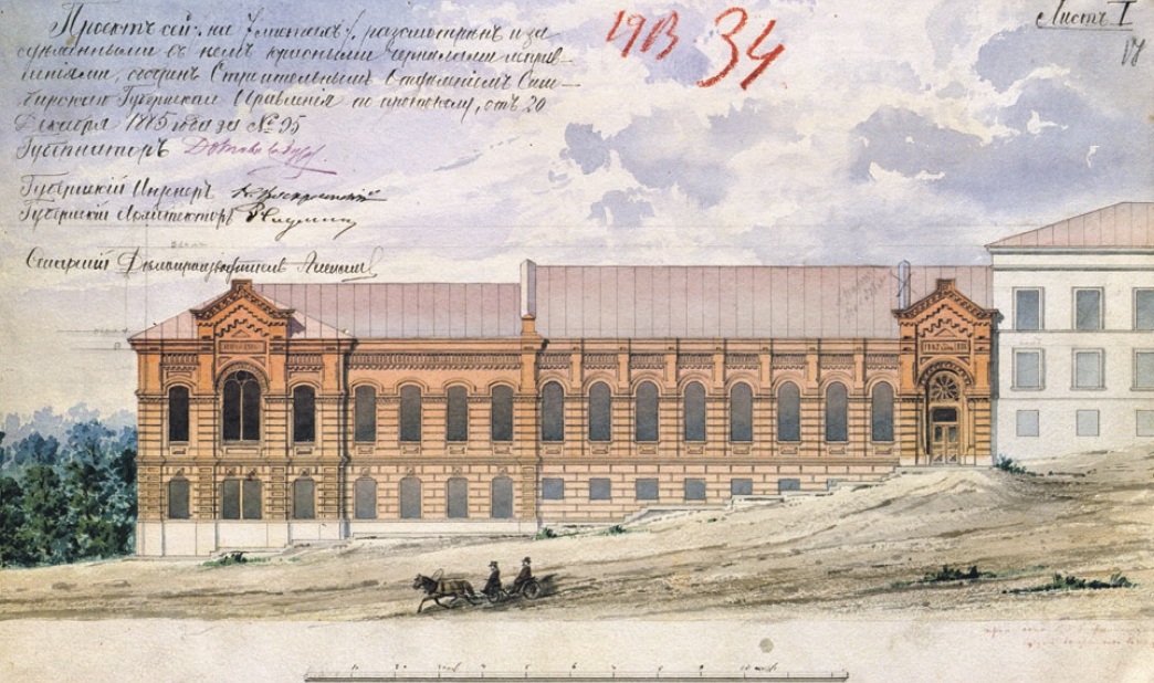 Здание было выстроено в 1887 году, но спустя десятилетие училищу вновь стало тесно. И тот же М.Г. Алякринский весной 1899 года представил на утверждение проект надстройки верхнего этажа. На листе он именуется вторым, хотя фактически является третьим.