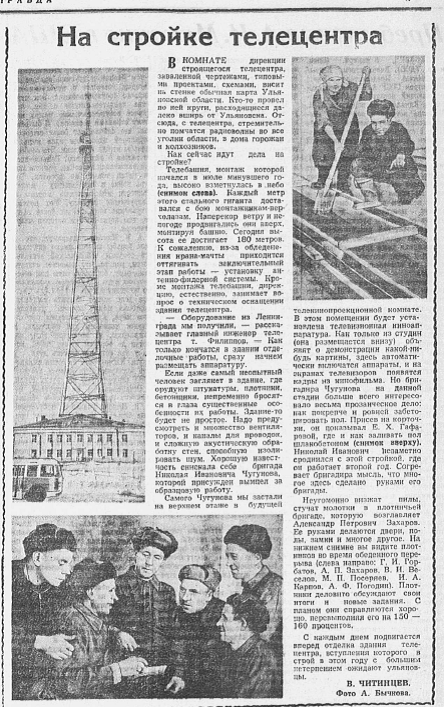 Весной 1957 года на территории Северного рынка в Ульяновске появилась новая строительная площадка. Здесь началось строительство Ульяновского телецентра. Ответственное задание было поручено коллективу УНР-220 треста №39.
